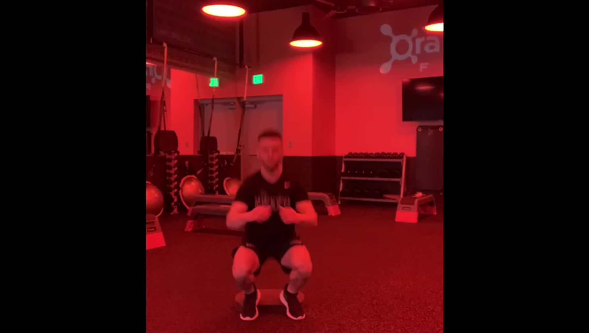 A guided heel-elevated full range of motion squat demonstrating proper form to improve squat depth, build lower-body strength, and support ankle, knee, and hip mobility.